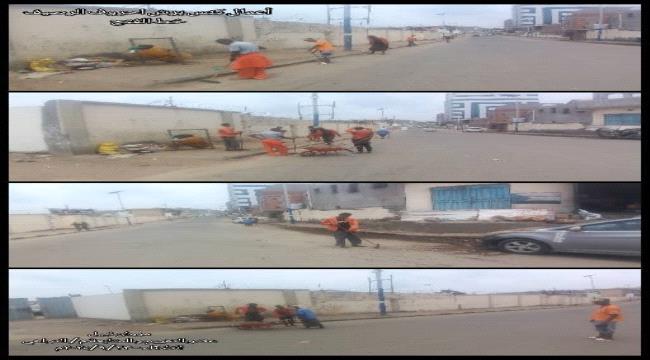 و شملت الحملات كافه احياء المعلا في قشط الأتربة والمخلفات المتبقية نتيجة المنخفض الجوي وبرش الأتربة و في مديرية التواهي