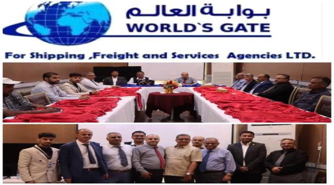 استضافت شركة بوابة العالم للملاحة والشحن والتوكيلات المحدودة، في العاصمة عدن لقاءً موسعاً ضم ممثلين عن الجهات الرسمية والسلطات العليا، وميناء عدن والمنطقة الحرة والغرفة التجارية، إلى جانب عدد من رجال المال والأعمال، وبحضور السيد محمد رضوان نزار، منسق الشركات العاملة في مجال الملاحة البحرية.