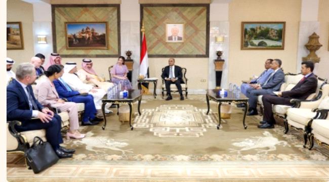 ورحب السفراء بالرؤية التي قدمها رئيس الوزراء لتحقيق الاستقرار وتعزيز حضور الحكومة في العاصمة المؤقتة عدن، مشيدين بجهوده في تعزيز الاستقرار المالي ودفع الإصلاحات الاقتصادية، خصوصاً في مجالي إدارة الإنفاق وحشد الإيرادات، مجددين التزامهم المستمر بدعم رئيس الوزراء والحكومة اليمنية ومجلس القيادة الرئاسي.