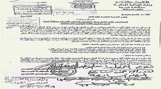ووجّه معالي وزير الصحة، قطاع التخطيط بالوزارة بإدراج المشروع ضمن المرحلة السابعة من مشاريع التمويل الخارجي لعام 2026م، بما يعزز منظومة الخدمات الطبية في المحافظة.