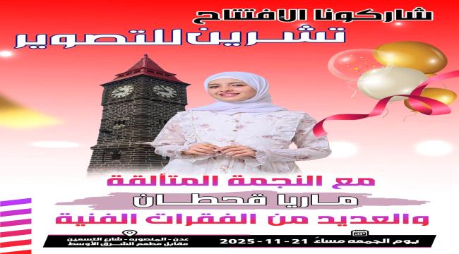 برعاية وحضور عدد من الشخصيات الفنية والاجتماعية، تستعد مدينة عدن يوم الجمعة الموافق 21 نوفمبر لافتتاح الفرع الرئيسي لمعـامل تشرين للتصوير، وذلك في خطوة تعكس التوسع المهني والتطوّر التقني الذي يشهده المعمل في مجال التصوير والإنتاج الإعلامي.