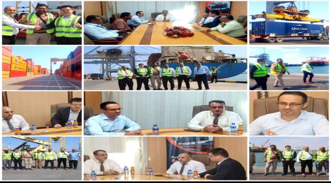 وعلى هامش الجولة، عُقد اجتماع موسع في مقر ميناء عدن للحاويات الذي تديره شركة عدن لتطوير الموانئ، بحضور: