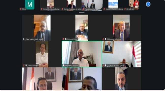 عقد نائب وزير الخارجية وشؤون المغتربين، مصطفى نعمان، اليوم، اجتماعاً موسعاً عبر تقنية الاتصال المرئي، مع رؤساء بعثات الجمهورية اليمنية في أوروبا وتركيا وسويسرا.
