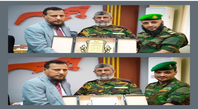 وخلال مراسم التكريم، تسلّم قائد الوحدة المقدم كمال مطلق الحالمي ونائبه فريد العطفي درعي التكريم من المحافظ شيخ، بحضور قائد القوات الخاصة اللواء عبد السلام الجمالي.