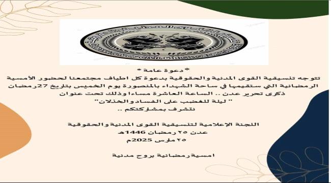 شهدت ساحة العروض اليوم مشاركة الشيخ علوي البند، أحد الشخصيات الجنوبية البارزة، في الاعتصام المطالب باستقلال الجنوب، مؤكدًا دعمه الكامل لقضية شعب الجنو...